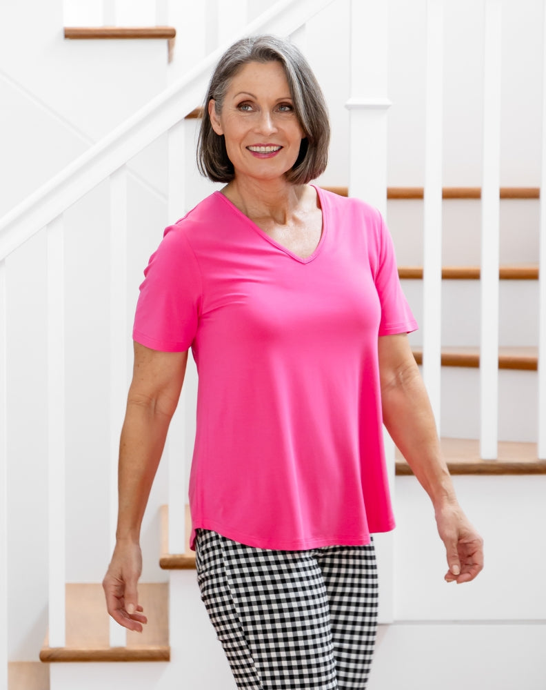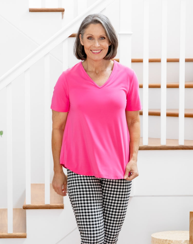 Say hello to the Elena Tee – the short sleeve version of our bestselling Laney Tee. Designed for easy outfitting across all seasons, this tee delivers that soft, stretchy feel you know and love in a fresh, versatile silhouette. Whether you're layering it up or styling it solo, Elena is your new everyday go-to.