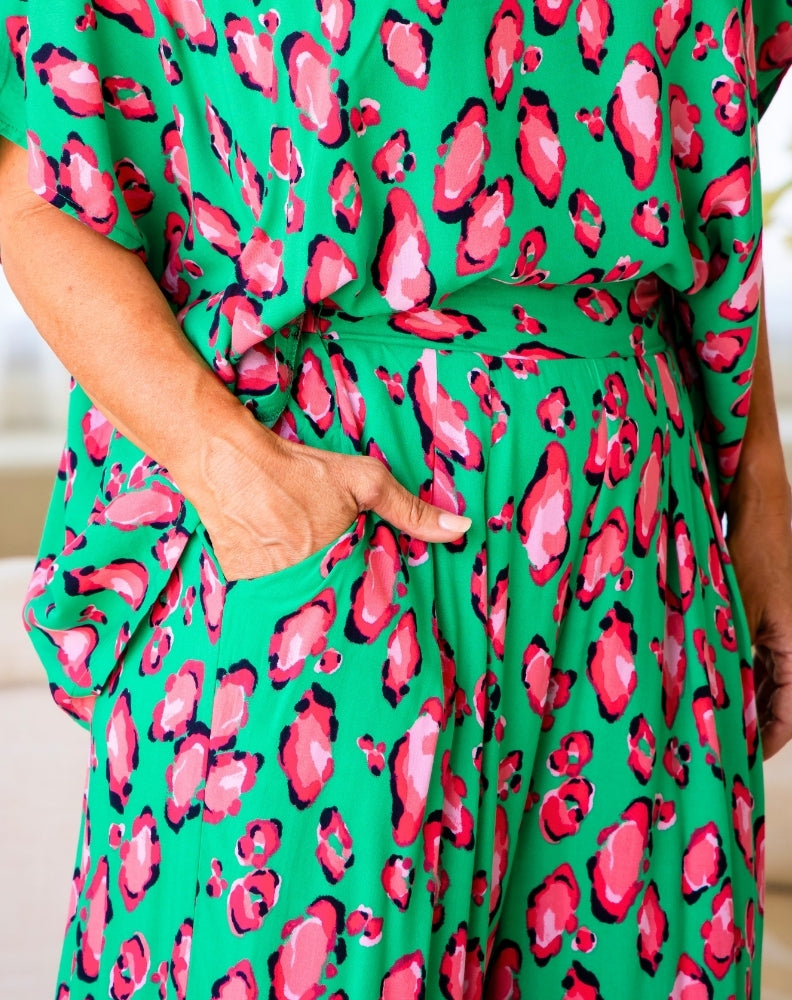 Bring the party vibes this Christmas with our bold and breezy Bethany Pant. Designed in our exclusive pink and green leopard print, this statement style is all about festive flair with a relaxed feel. Whether you’re dressing it up for Christmas Day or mixing and matching for holiday catch-ups, Bethany adds a fun pop of colour!