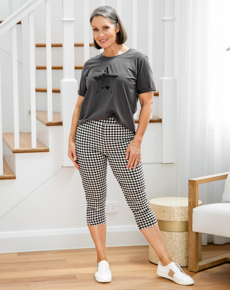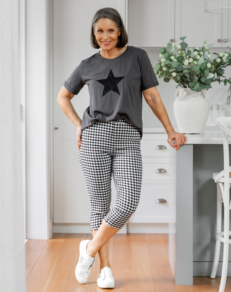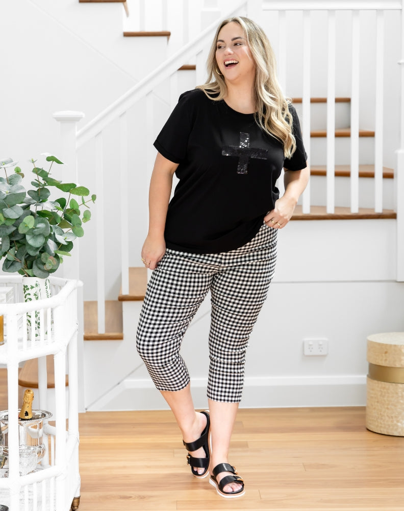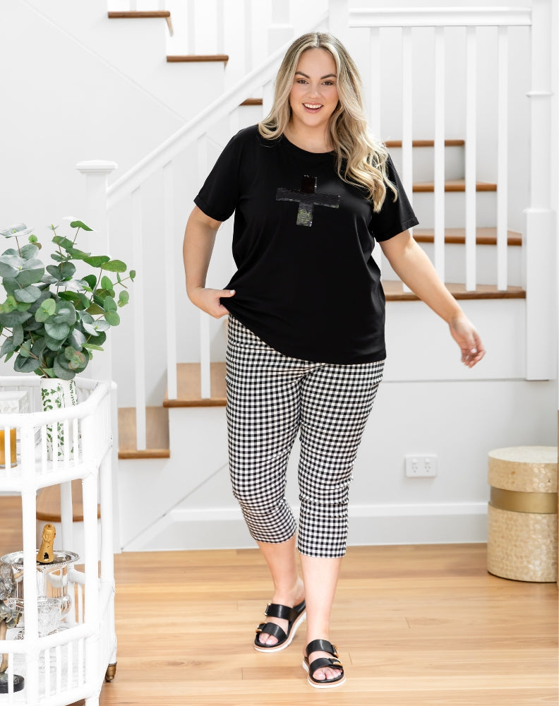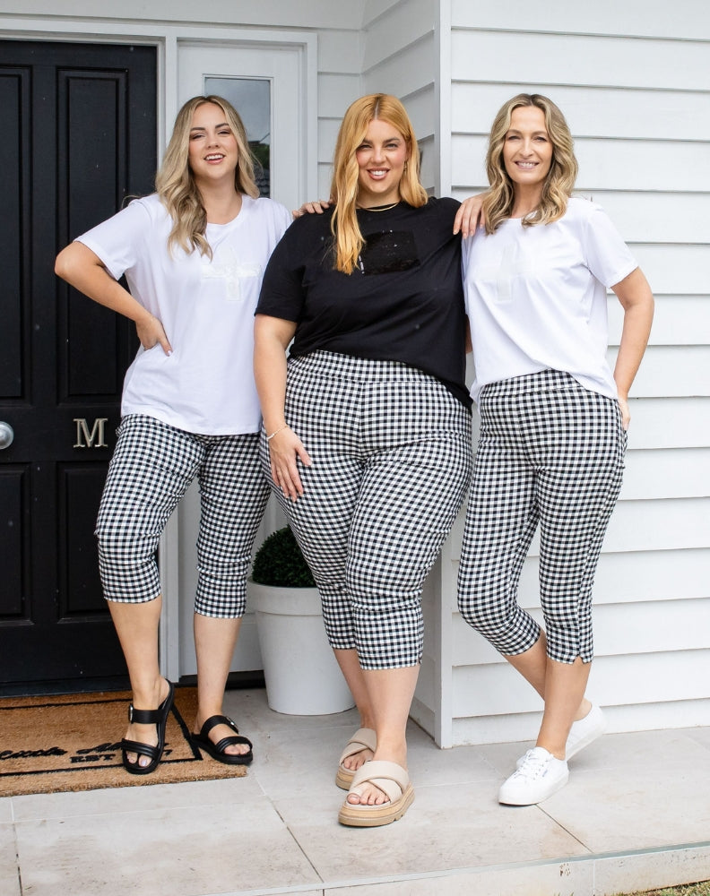 Our VIRAL Gingham Leggings have just dropped in new 3/4 Capri Length with a New Check Design! Perfect stretchy pant to take you from everyday style, work, weekend wear or evening glam. These pants are extremely stretchy, very soft and will be your pant bestie.