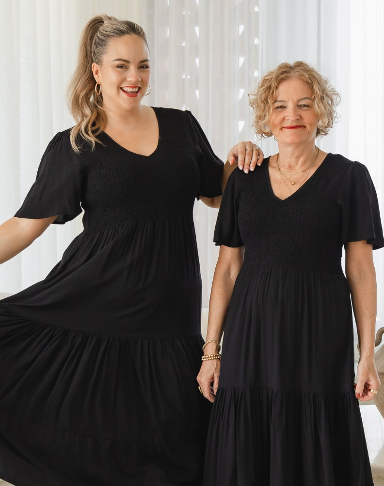 This dress is a new design for Bee Maddison and wow it's definitely going to be a new fav!! Fabricated in rayon with an elasticised shirred top and flutter sleeve this dress mixes style and comfort perfectly. A wonderful 'Teacher Dress' but also appropriate for many workplaces and weekend occasions.