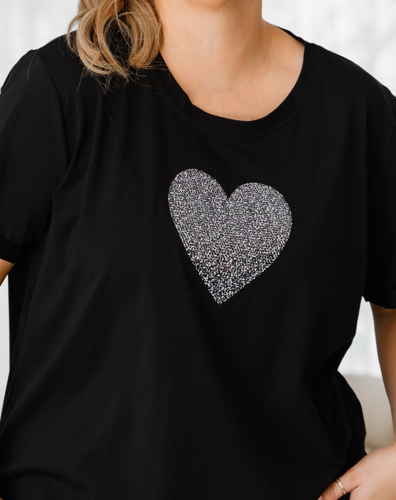 Heart Sequin Tee - Black